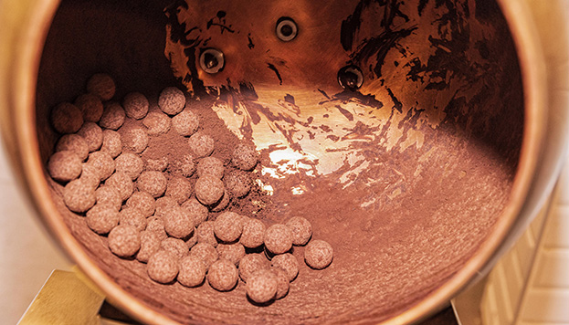 Tandis que David termine le processus de fabrication dans une sorte de bétonnière miniature, où ils sont en mesure de « rouler dans du cacao jusqu'à 500 truffes en 40 secondes à la main », Ricardo nous livre d'autres secrets.