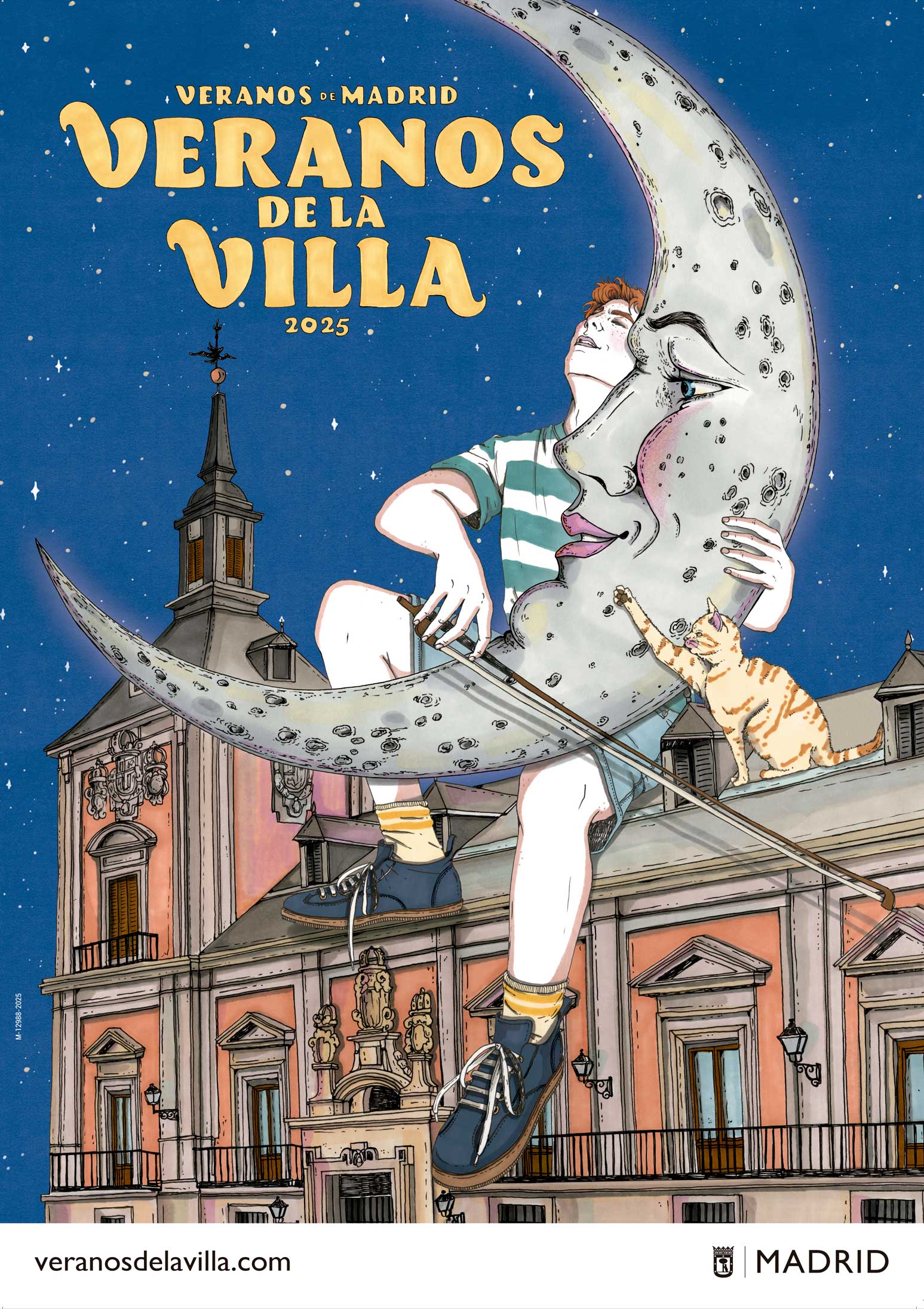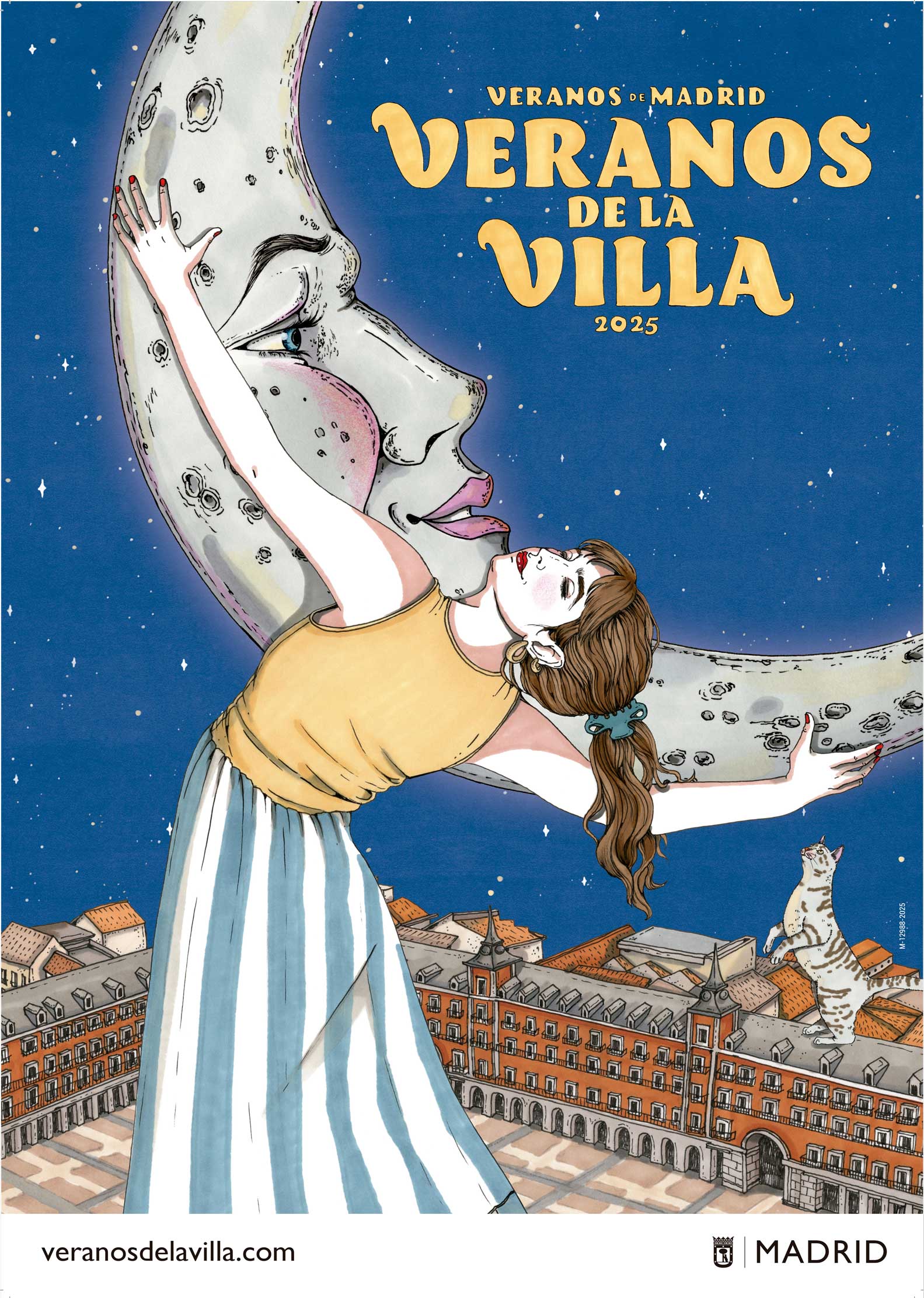 El Área de Cultura, Turismo y Deporte del Ayuntamiento de Madrid facilita la descarga de los carteles oficiales de la campaña de Veranos de la Villa 2025 creados por Ana Jarén.